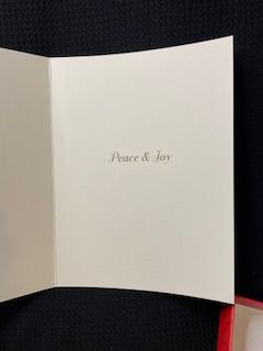 Box of 17 (of original 20) Holiday Greeting Cards w/ envelopes. Galison Notecards. Cardinals on the front. Interior reads: "Peace & Joy"