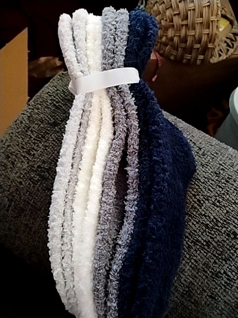 4 pk (Blu, lt gray, wht, dark gray) Aerosoles Slipper Socks, Sock SZ 9-11/ Shoe SZ 5-10