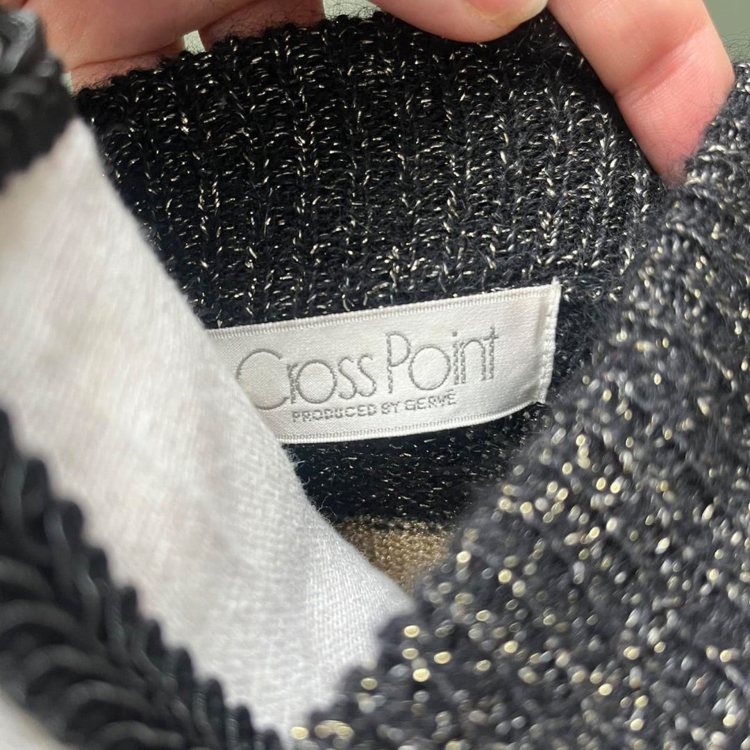 Retro glam black and gold metallic chunky striped sweater with a mock neck and shoulder pads