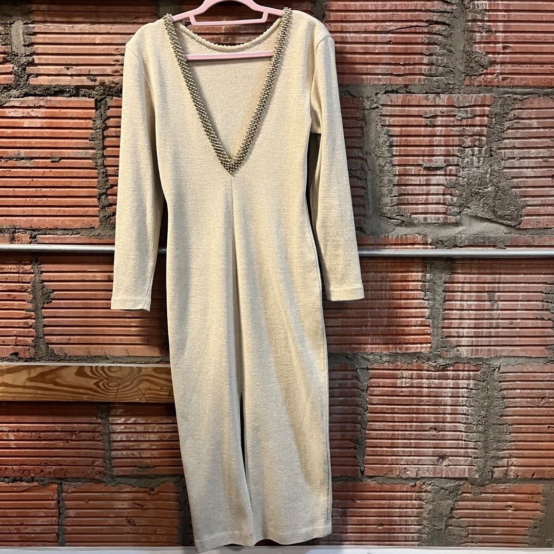 80s Hand-Beaded V-Back Dress, 8/M/L