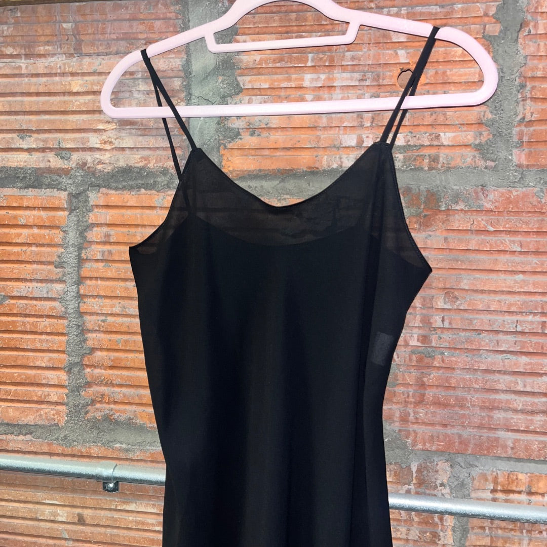 90s Sheer Black Maxi Slip Dress, 6/S