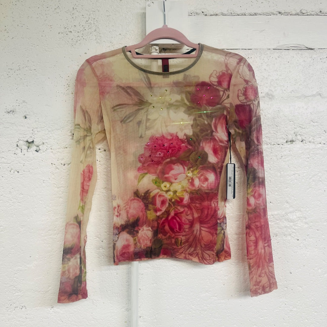 90s/00s "Just in Time" Floral Mesh Top, S/M
