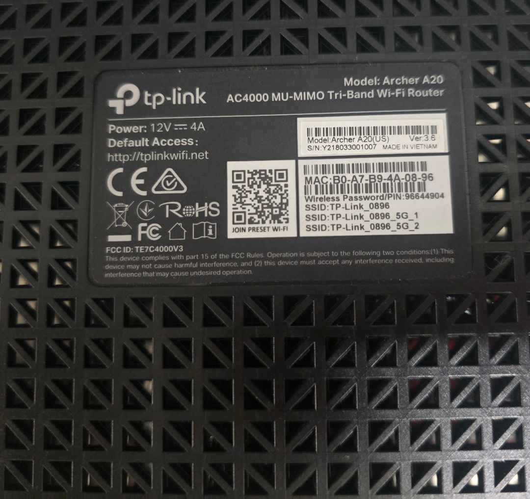 TP-Link Archer AC-20 Wireless Tri-Band Router-Tested-Non-Default Passwords Set