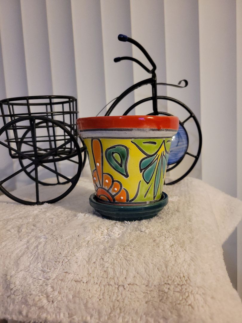 Flower pots holder is 4 3/8" across and 3 1/2 deep with Talavera Pot