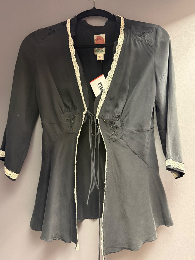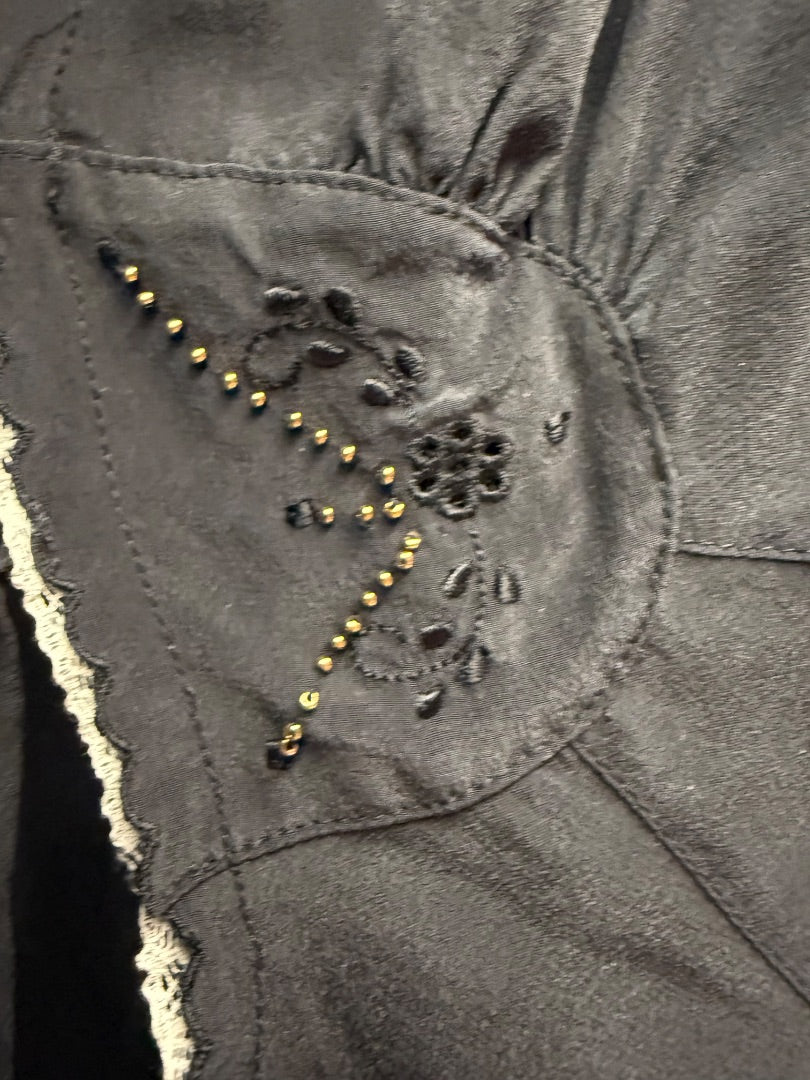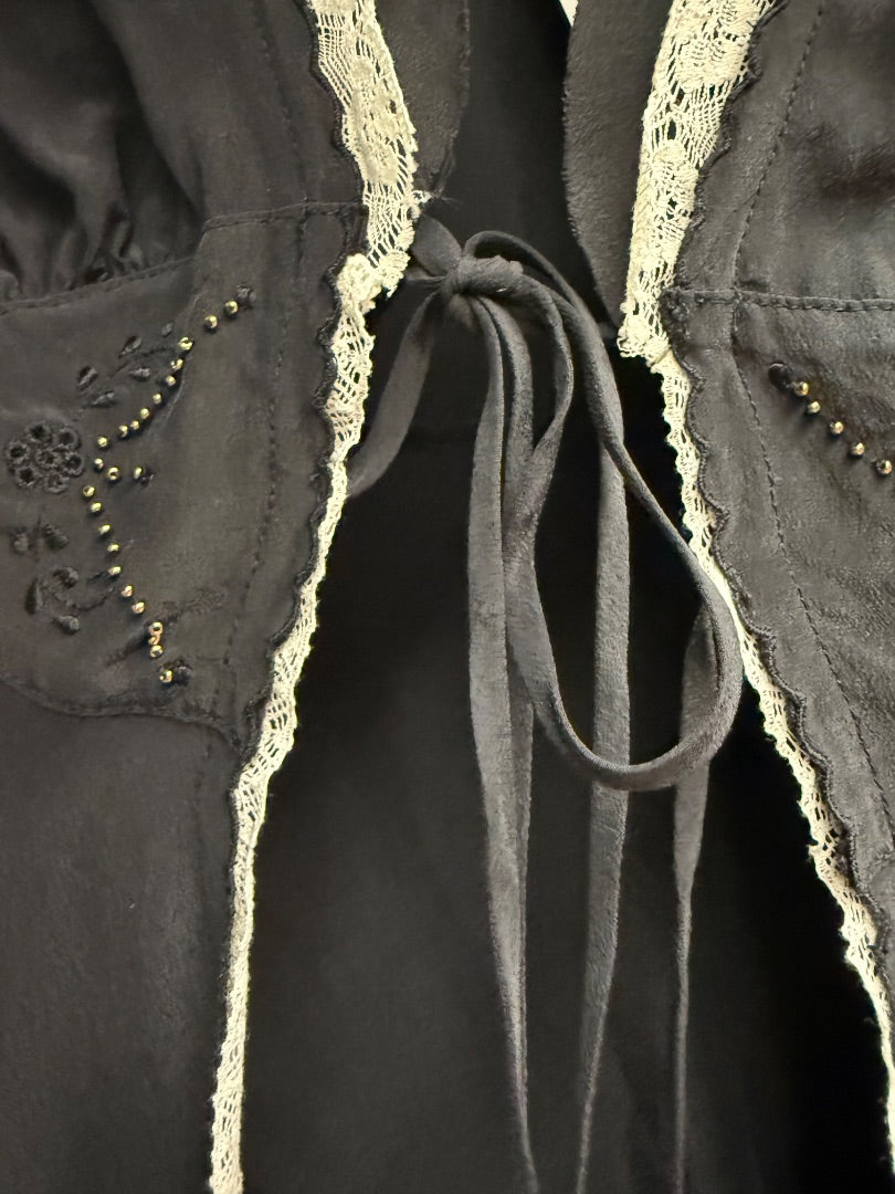 Blk/Crm lace Wallflower Silk top, S