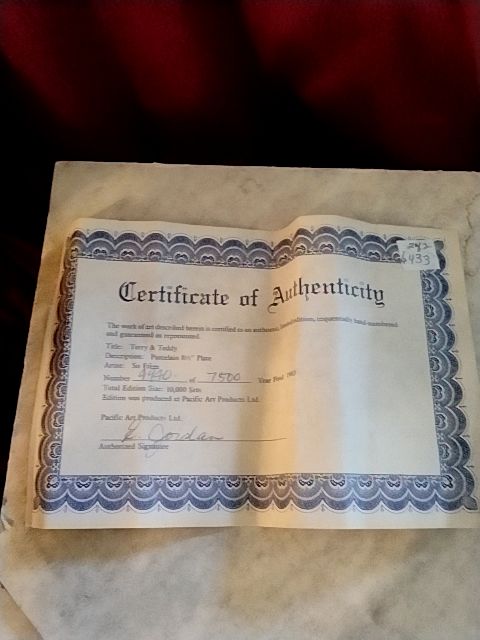 Terry & Teddy Boy and Girl Collectible Porcelain Plates. (Number 6,433 of 10,000 made) (Set of 2) Boy and Girl W/Certificate of Authenticity.