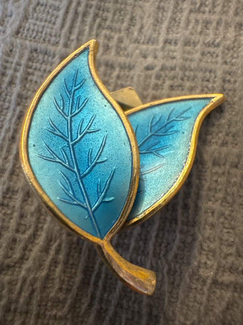Vintage Dana Anderson necklace earrings and bracelet. Light blue enamel is painted on gold clad sterling silver to create this beautiful set made in the 1940's. Mel's Denmark