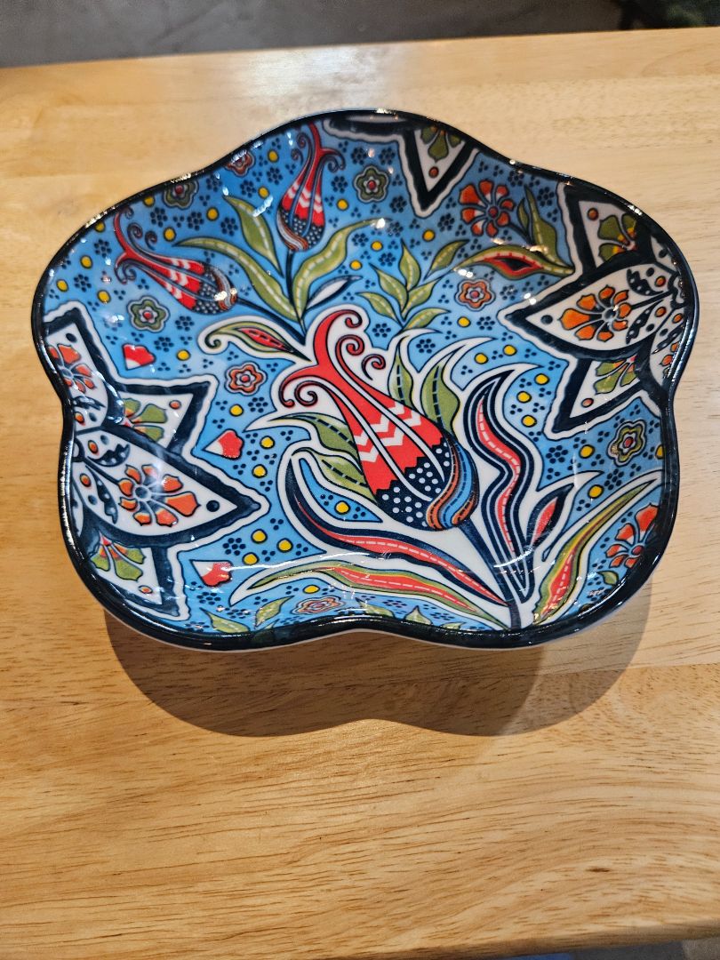 Blue w/flower Vancasso Porcelain flower plate, Medium