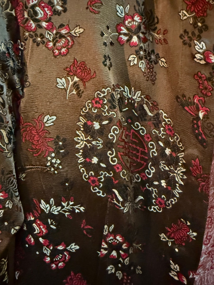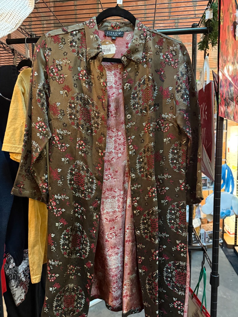 Silk-blend Oriental Pattern with front snap closure 3/4 sleeves
