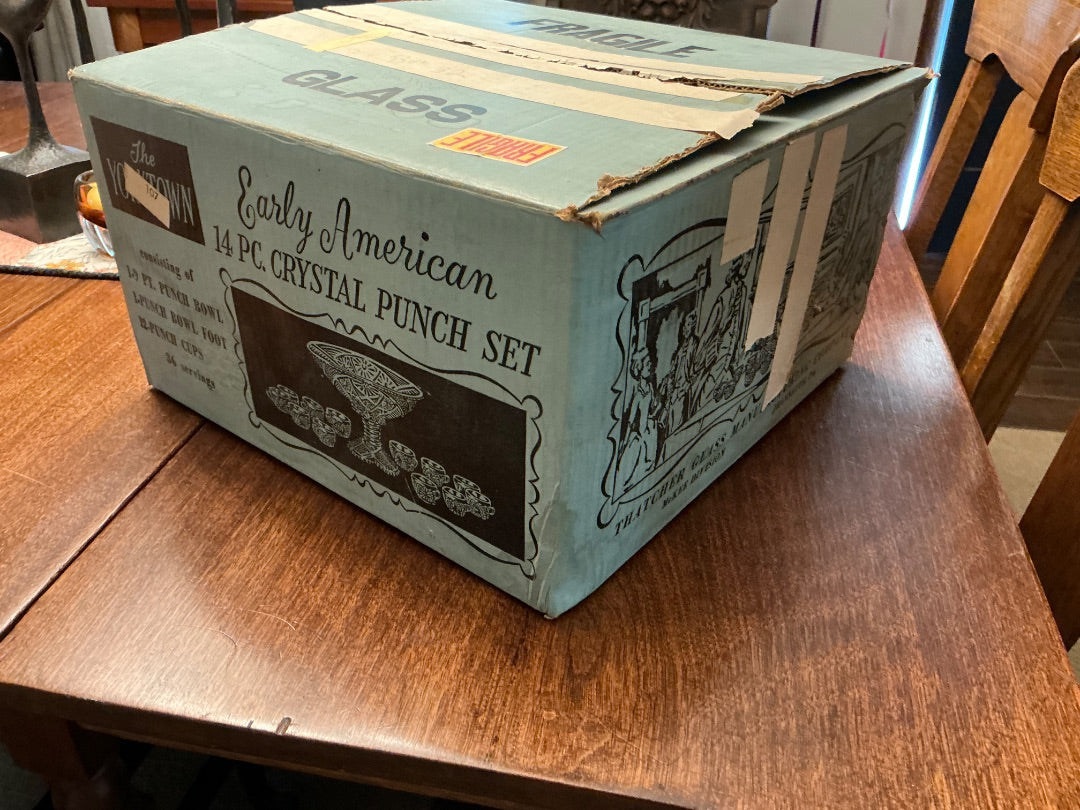 Clear glass Thatcher Glass Early American punch bowl set
