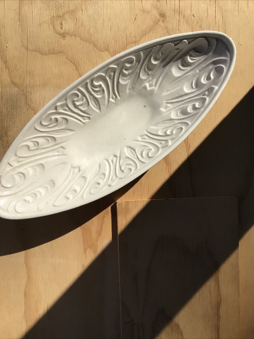Cream and Green Maurice of Cali Maurice Pottery Server, 1.75”