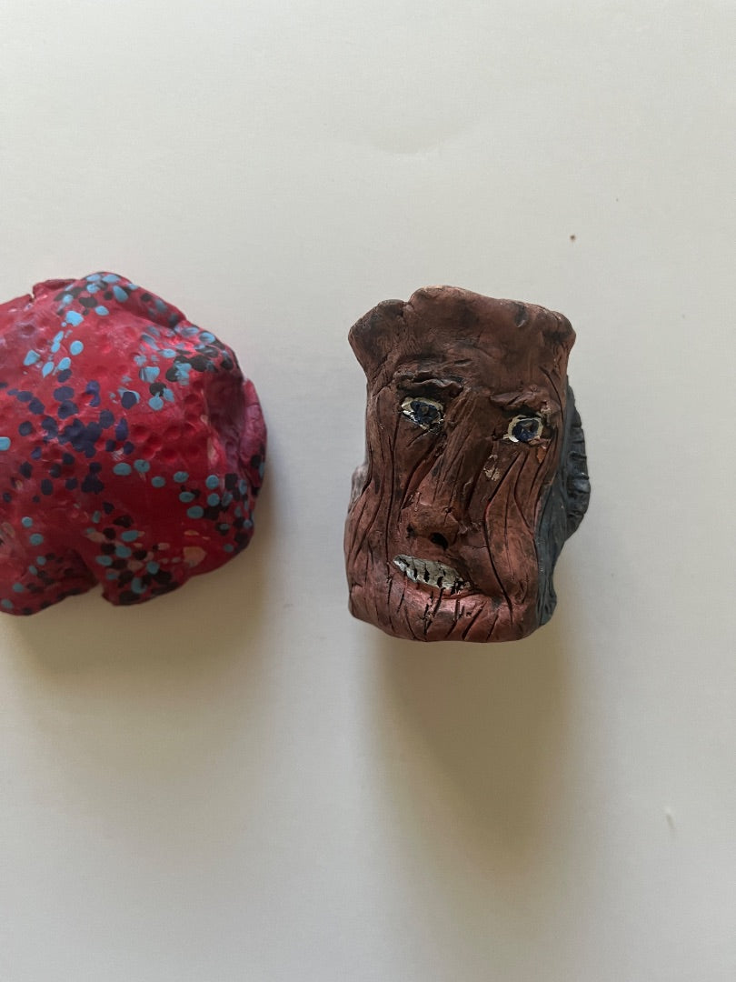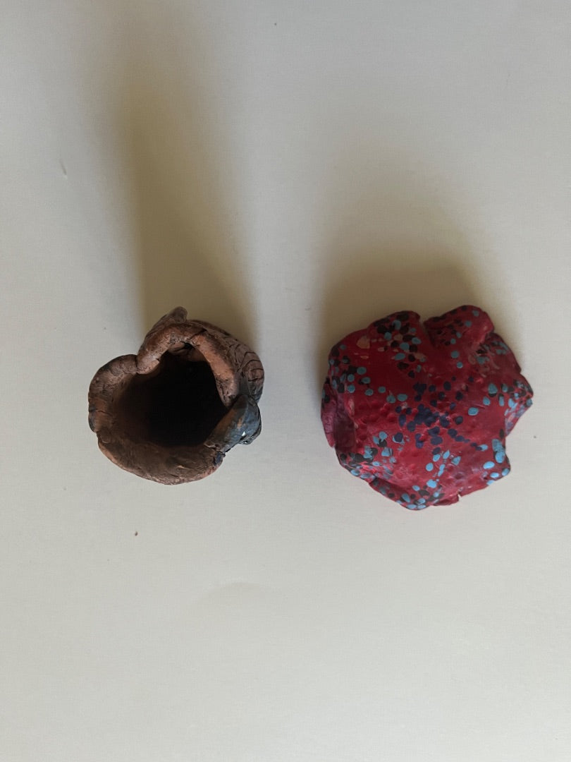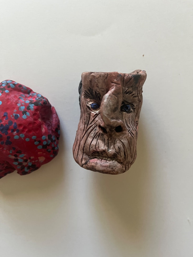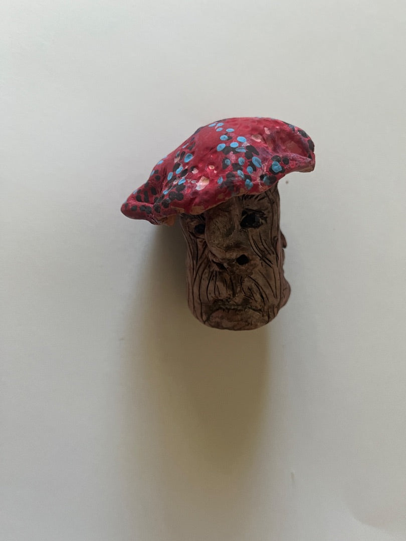 3 Faces Mushroom Jar with removable lid. Kiln Fired Ceramic Jar.