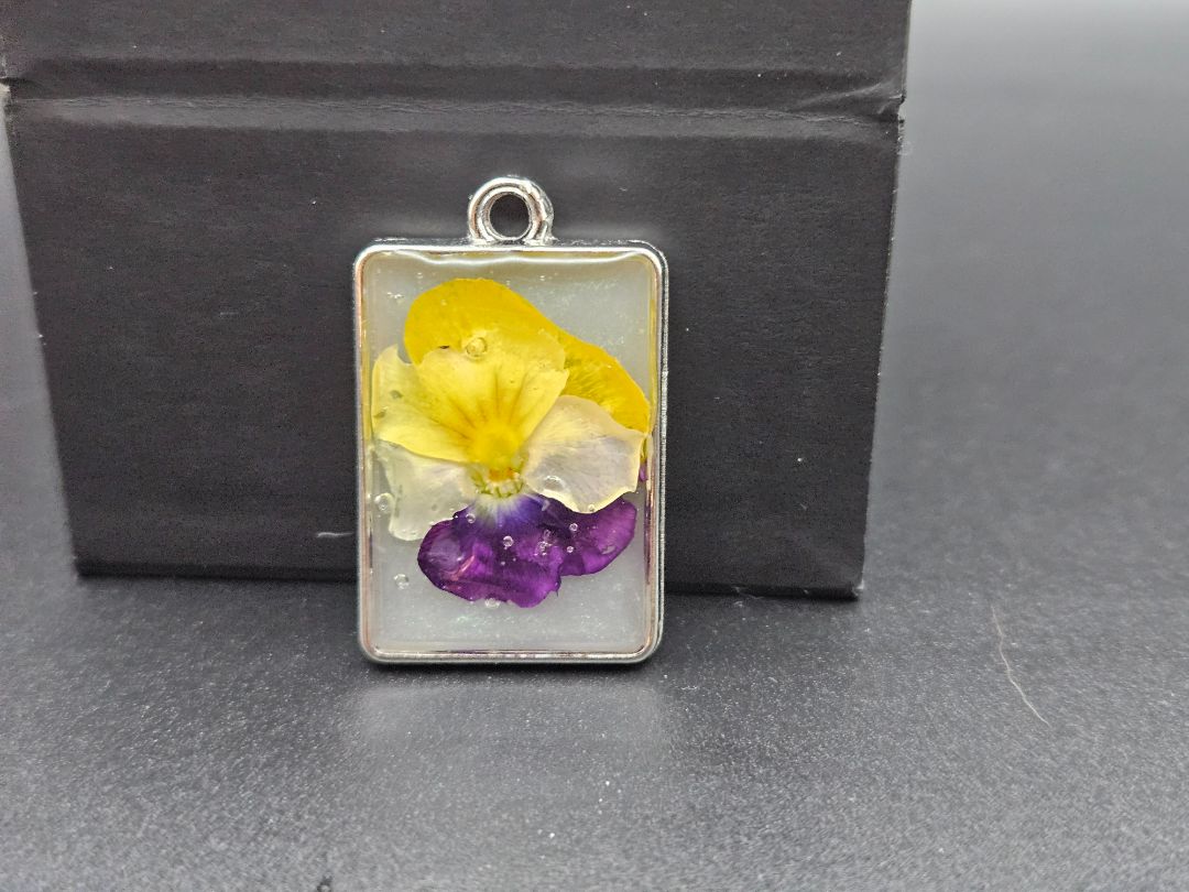Each pendant encases real pressed flowers, hand-selected and preserved in crystal-clear resin to freeze every petal, vein, and hue forever in place. The result is a wearable miniaturescape — soft, delicate, and utterly unique.