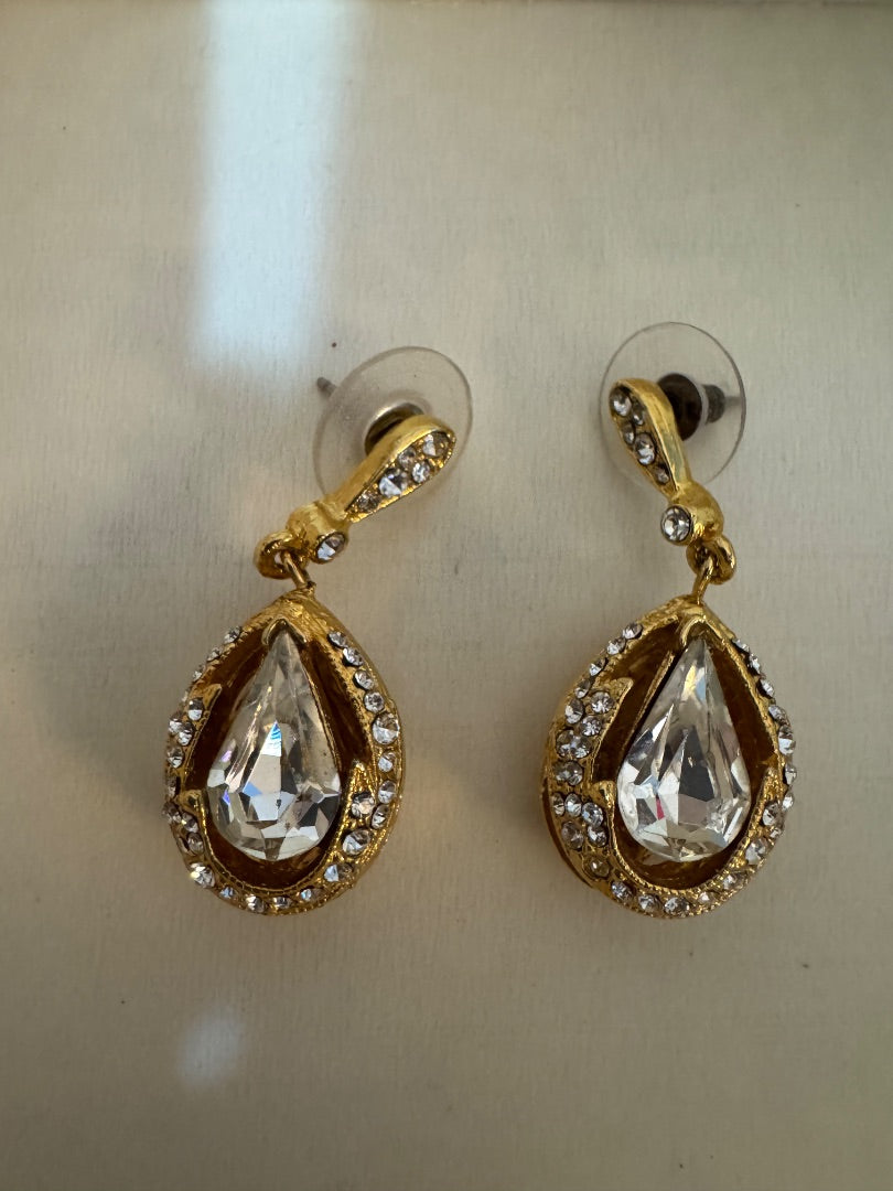 Gold Tone Rhine oval drop earrings
