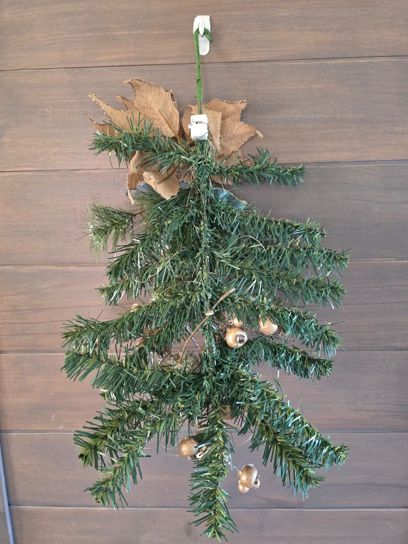 Christmas Wreath Swag- Blue and Gold with Lights. Recycled Christmas Tree