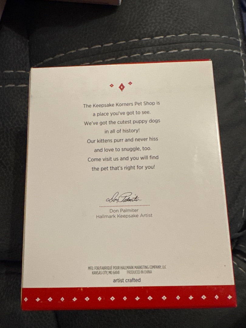 Hallmark ornament. Keepsake korners pet shop. Vintage 2015
