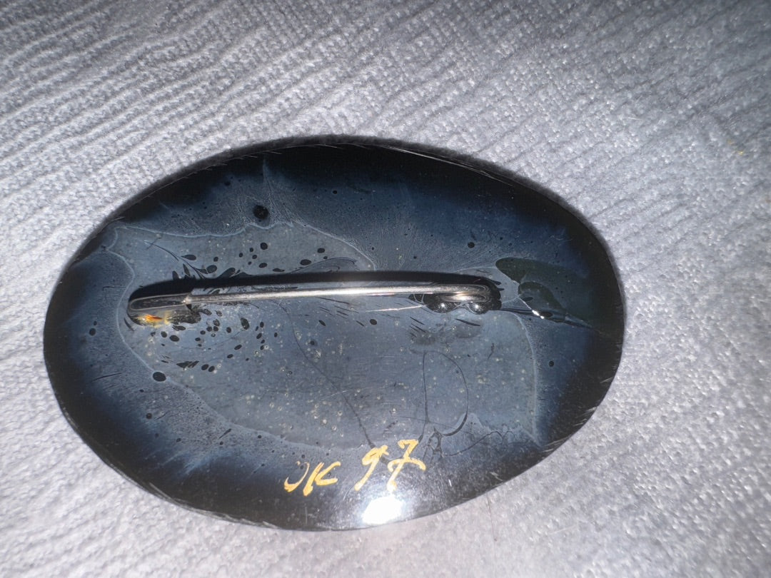 Flowers hand painted on a black background. Signed ok 97 on back.