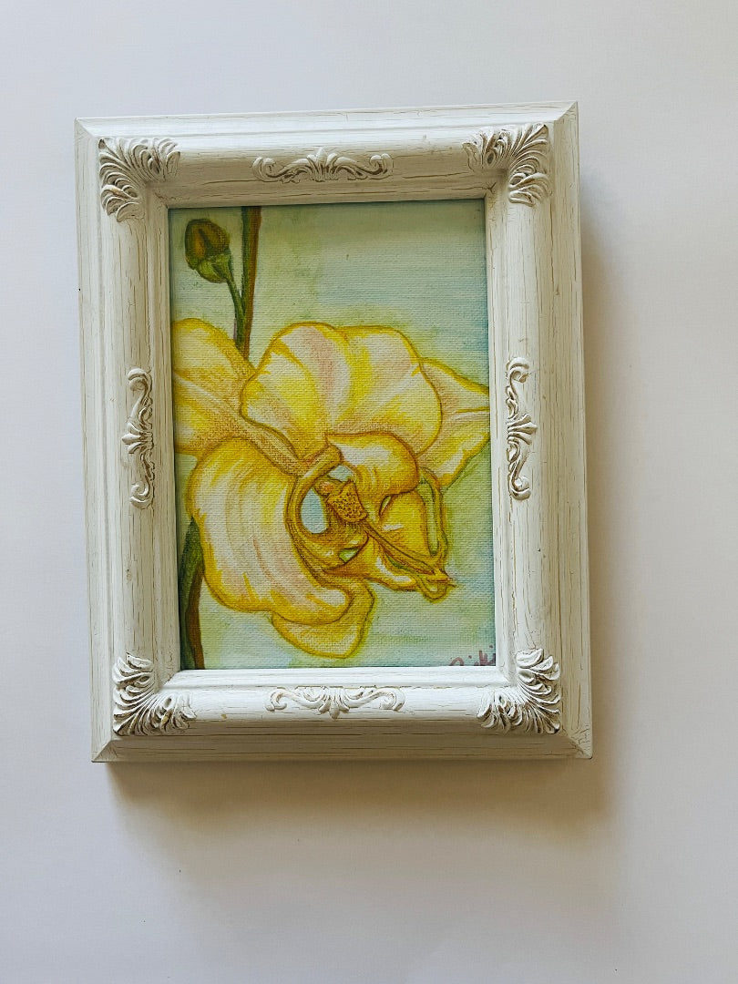 Original Ink Orchid Drawing 5x7 in a White Farm.