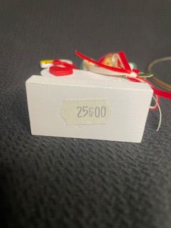 Handmade. Wooden Goose Ornament w/ Boy Red Hat, Horn. ~ 4.5" tall. Stand not included.