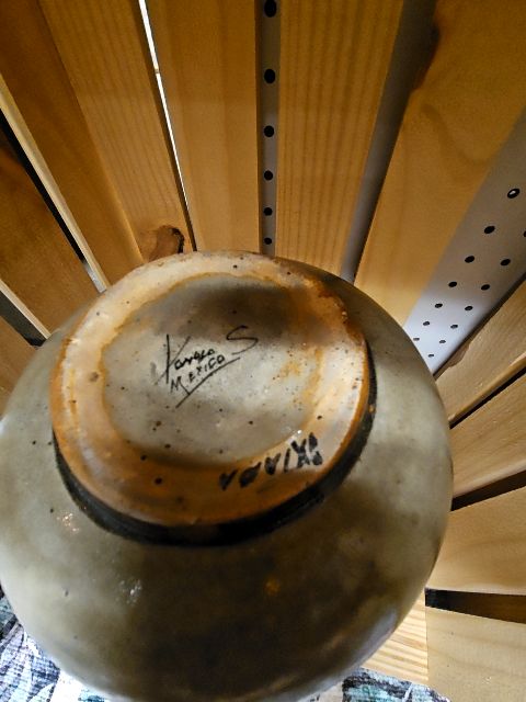 RARE Vintage Tonala Pitcher by Salvador Vasquez Carmona, Brunido Pottery, 70s Mexico, Bird & Floral