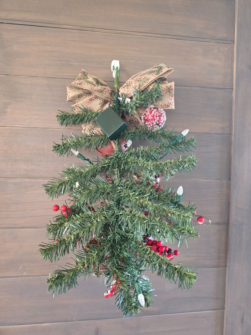 Christmas Wreath Swag- Jingle Bells Red accents with Lights. Recycled Christmas Tree