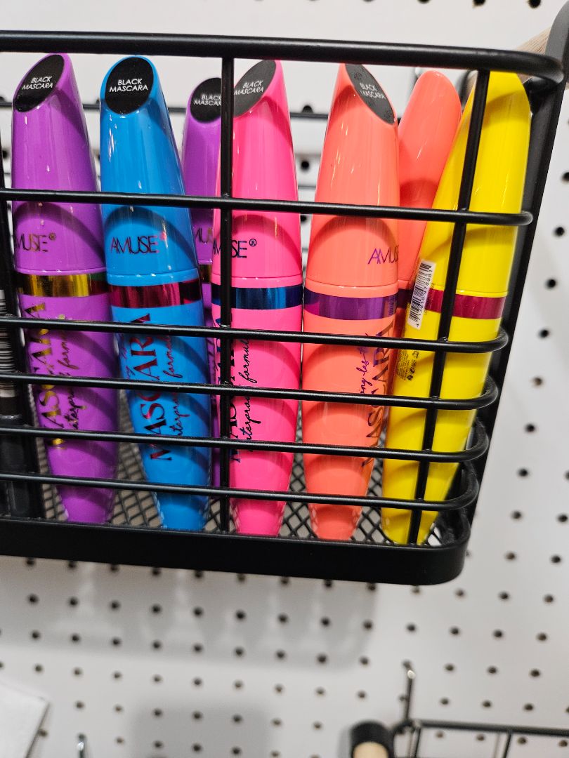 Black mascara in a few different colored tubes! Blue, teal, pink, yellow and orange!