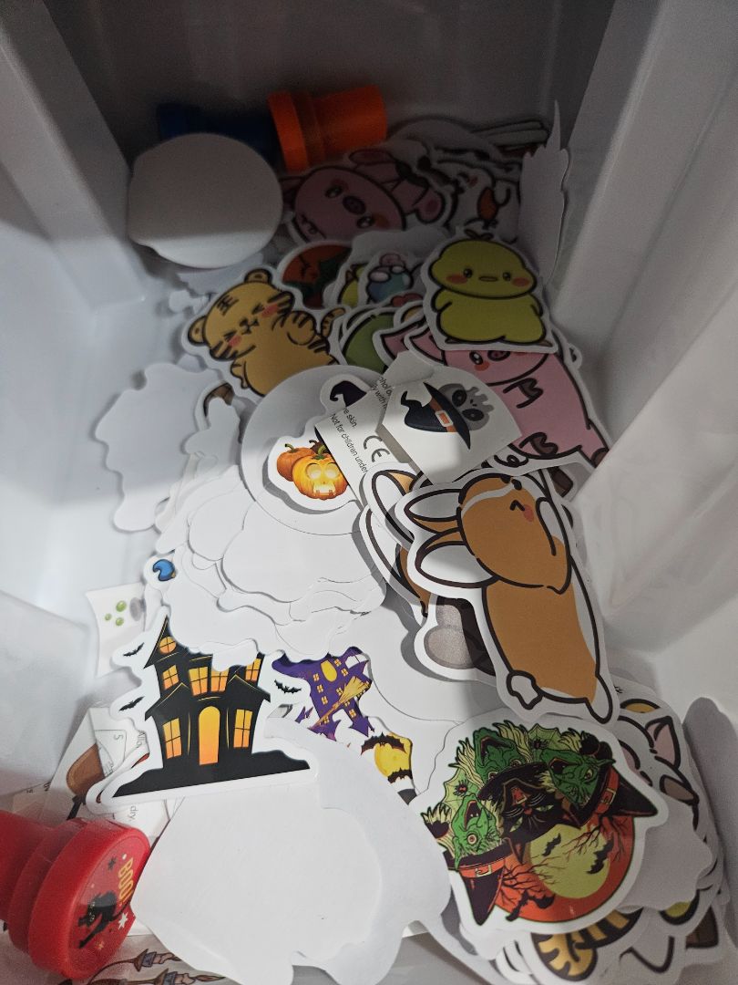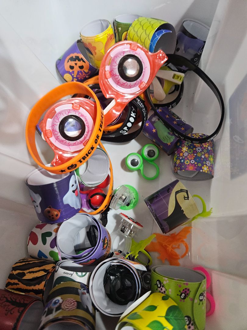 25 cents per toy in the white bins! Stickers, temptorary tattoos, fidget toys, etc.
