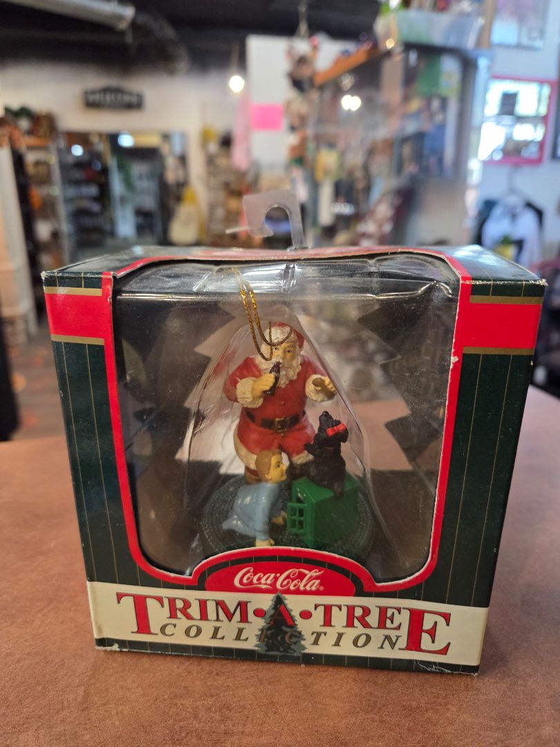 Vintage 1998 Coca Cola Santa Ornament Boy and Dog