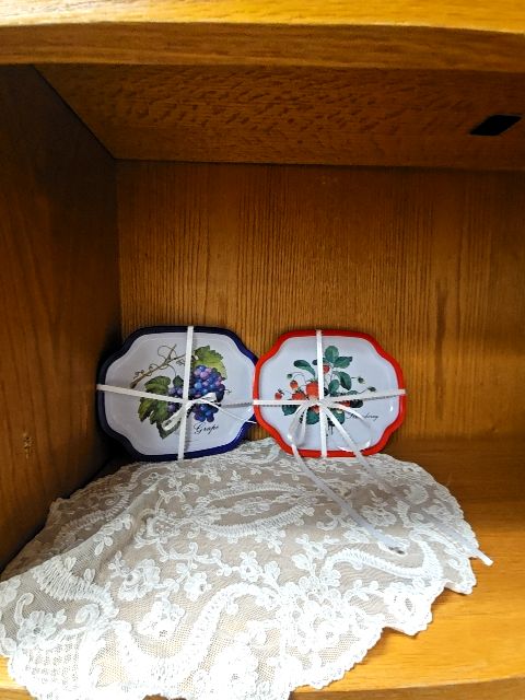 VINTAGE 3 SNACK TRAYS GRAPE LEMON STRAWBERRY LR