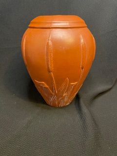 Vintage (1980's) Matte Terra Cotta Teleflora Gift Vase w/ Cattails. ~ 8.5" tall x 6.5" at widest point.