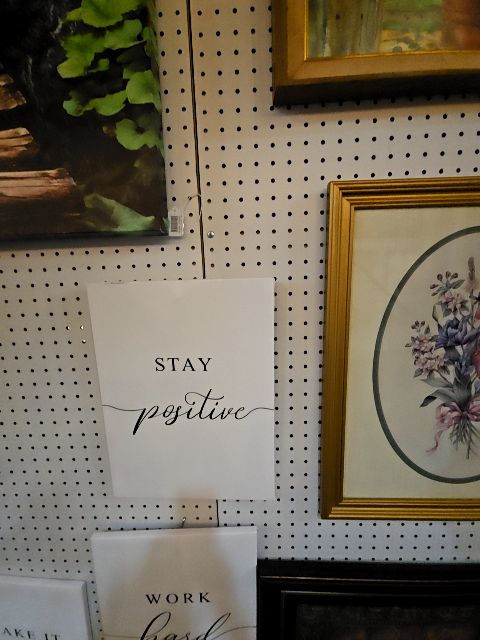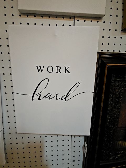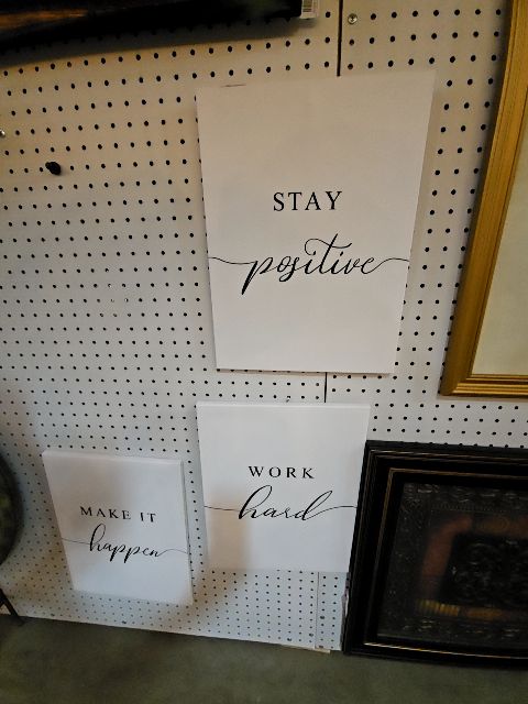 White and black letters canvas Stay positive/make it happen/work hard LR, 16x12 in
