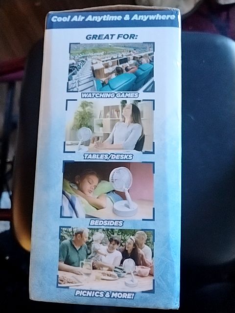 White (Blue & Wht Box Northern Chill Portable Foldable Fan, 5.4x 5.4x2.6 (folded) 5.4x5.4x11.8 (Extended)