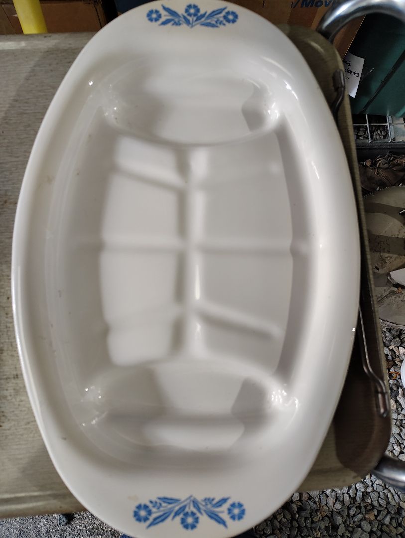 white/blue Corning cornflower platter