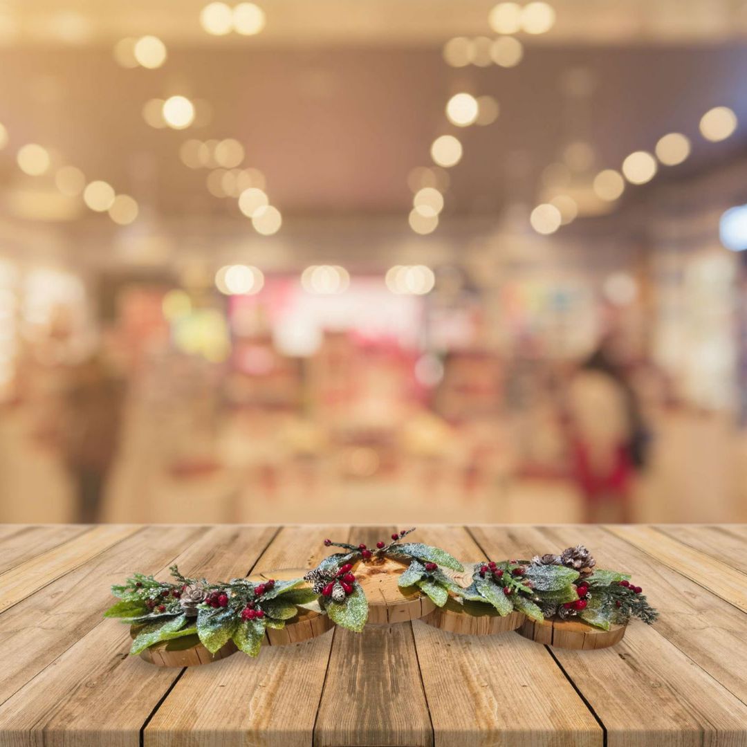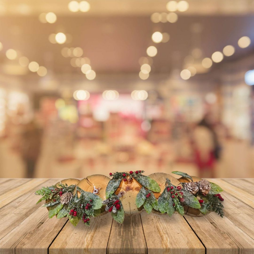 Wood Handmade Wood Slice Candle Holder, 13.5 x 3 x 3