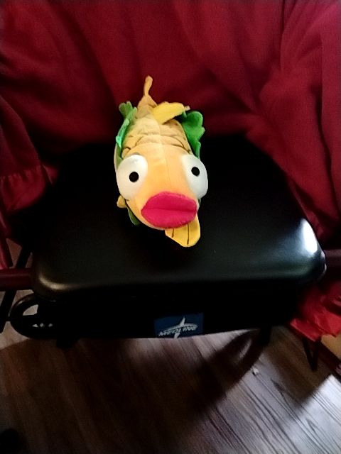 Bark "Ernesto The Fish Taco" squeaky dog toy. Yellow, green, tan, red.